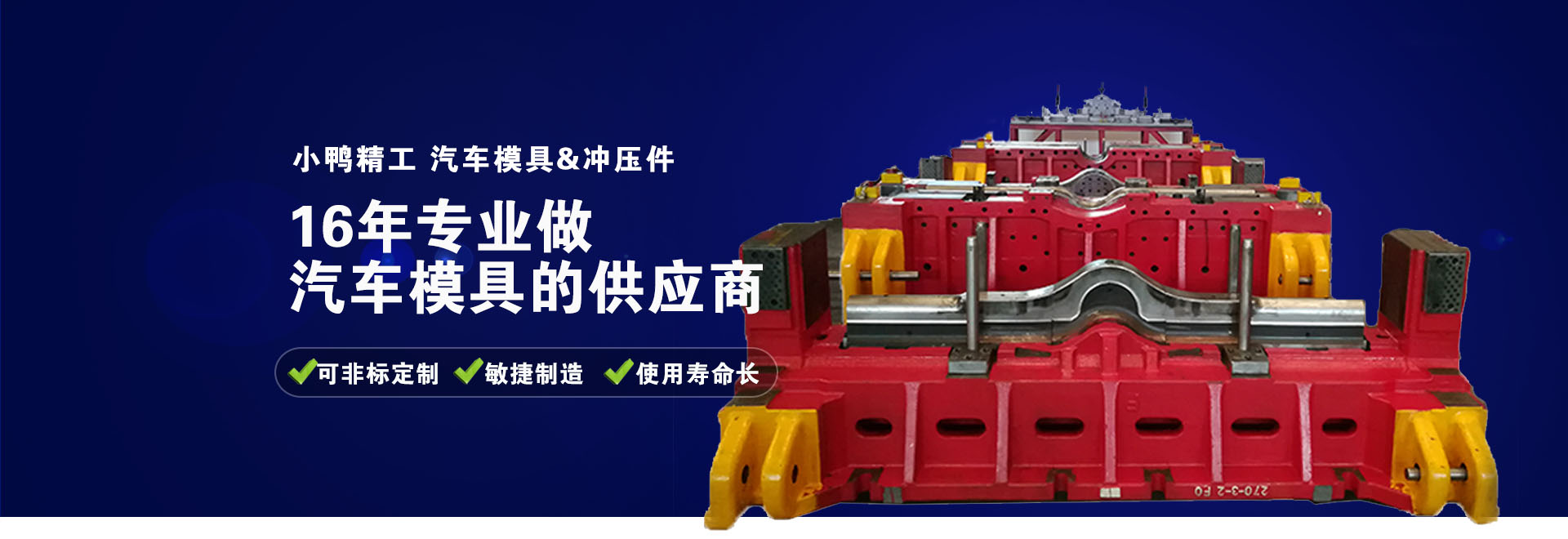 车轮装备、汽车模具、汽车零部件是山东小鸭精工机械有限公司的三大主导产业。多年来,小鸭精工秉承“用人品打造精品、用人格塑造品牌、用产品写照人生、用产业回报社会”的经营理念,坚持“质量第一,技术领先,持续创新,为客户创造价值”的指导思想,始终不渝地专注于车轮装备、汽车模具和汽车零部件的研发制造,致力于打造高端装备和汽车零部件领域的产业航母。